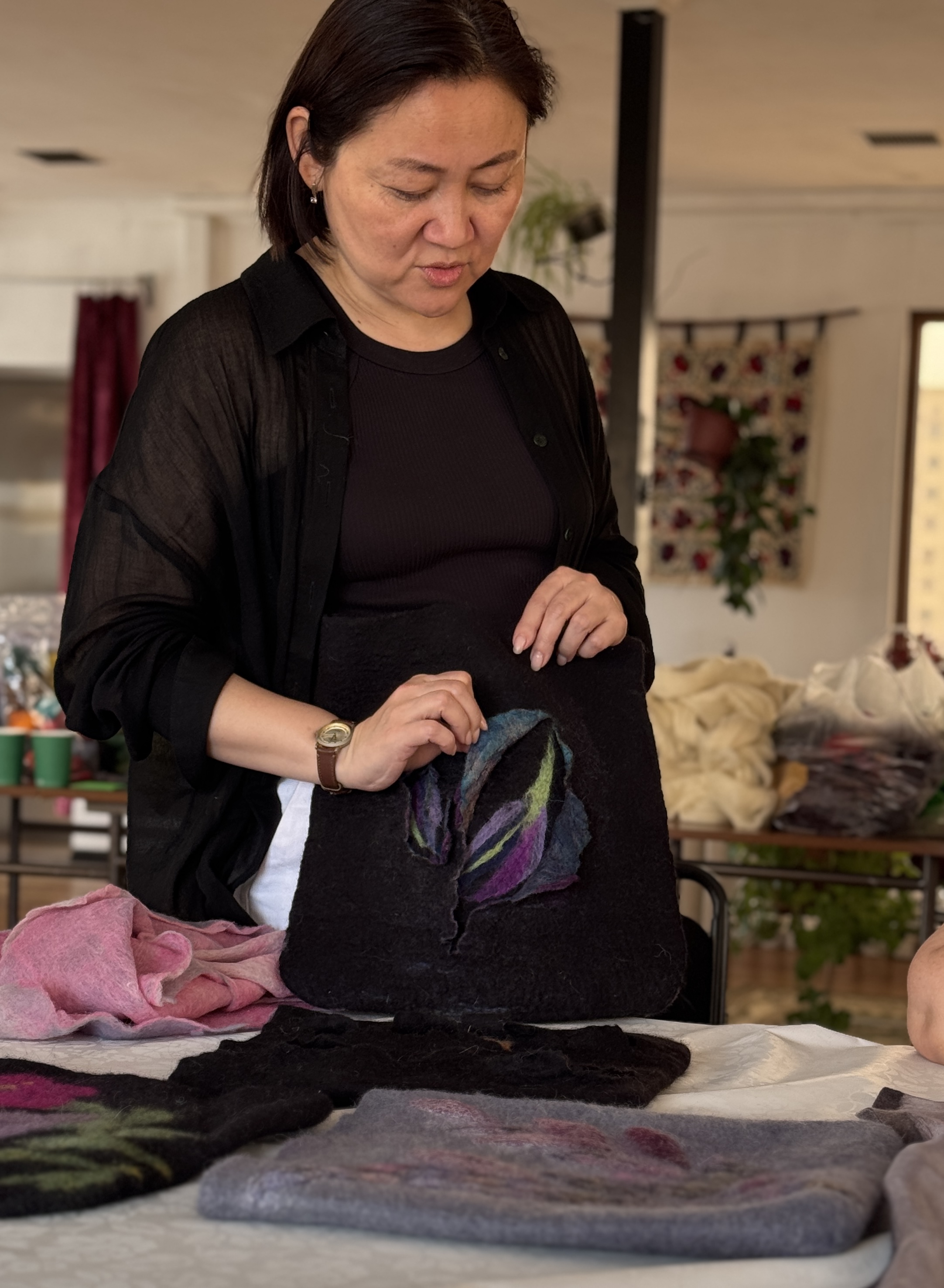 Kamala and Asel are sisters and both third generation felt artists. Together with their mum, Iniskan Turgankazieva, they run a family business Uulman Felt and teach local and international felt makers.