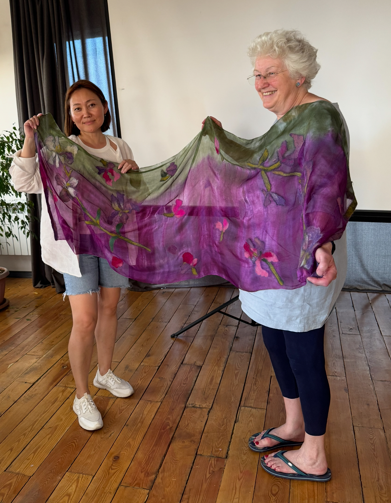 In the afternoon, Asel introduces her signature workshop on nuno-felt scarves, inspired by the delicate forms and colours of flowers. These elegant, lightweight scarves – recognised by UNESCO for their exceptional quality and design – are a testament to Asel’s talent for blending traditional craftsmanship with refined aesthetic sensibility. Participants will begin creating their own flower-inspired scarves under her expert guidance.
